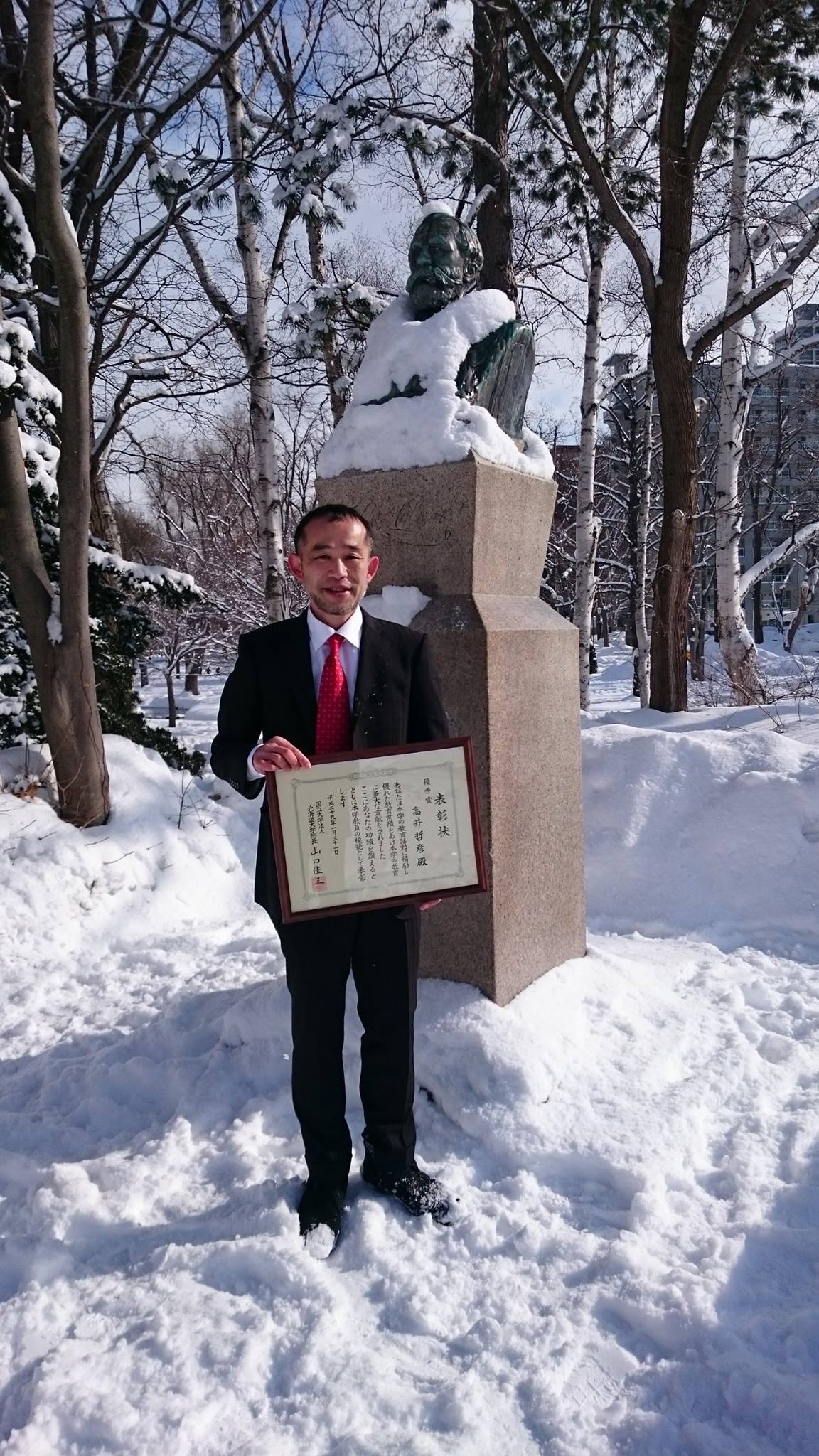 北海道大学教育総長賞を受賞しました Takai won the Hokkaido University President’s Award for Outstanding Education. 2017/01/31 教育 高井は、専門教育(経済史)&グローバル教育を理由に、北海道大学教育総長賞を受賞しました